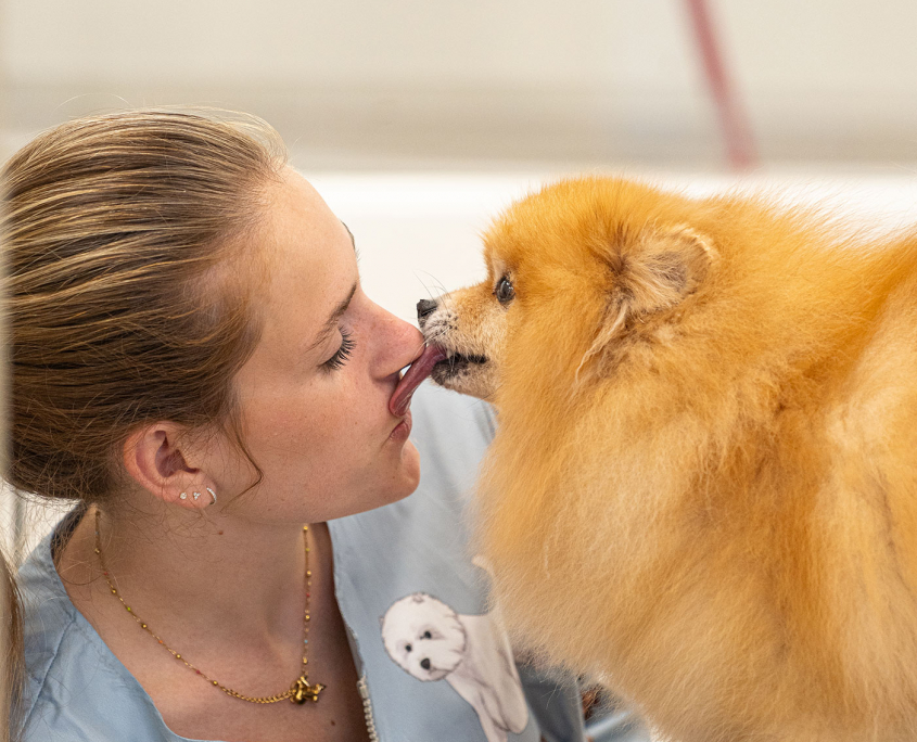 Desde que nací, los perros han estado presentes en mi vida, y siempre disfruté mucho de pasar mi tiempo libre en su compañía. A los 16 años me inicié en el mundo de las exposiciones caninas, sumergiéndome de lleno para aprender de los distintos profesionales del país. A los 18 decidí pasar el verano en Estados Unidos para ampliar mis conocimientos sobre el mundo canino, y así lo hice durante los siguientes siete veranos. Eventualmente comencé a trabajar en una peluquería canina en España, y fue allí donde conocí a Claudia.